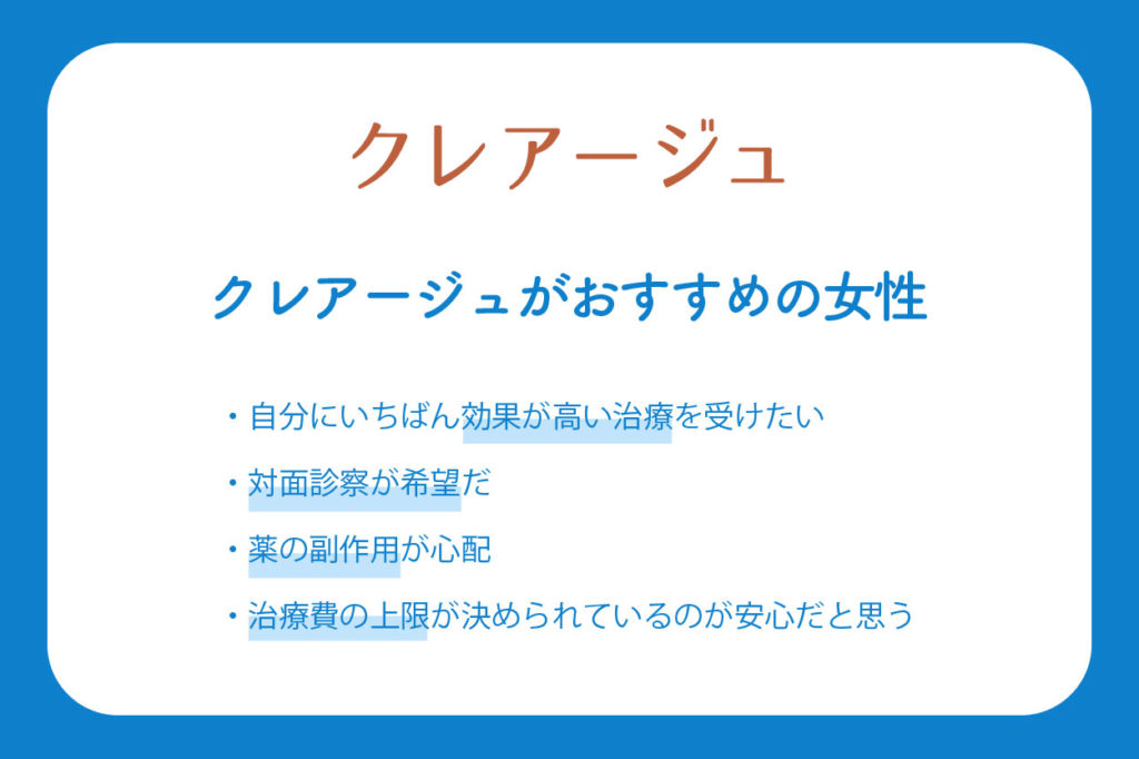 「より効果の高い積極的な治療を、安く行っていきたい」という女性におすすめです。