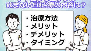 「最近アトムクリニックの飲まないED治療って広告見かけるけど、あれって何?」そんなふうに気になっている方も多いのではないでしょうか。ED治療といえば、バイアグラやシアリスなどの飲み薬が一般的ですね。しかし体質や持病、副作用の不安から「薬を使...