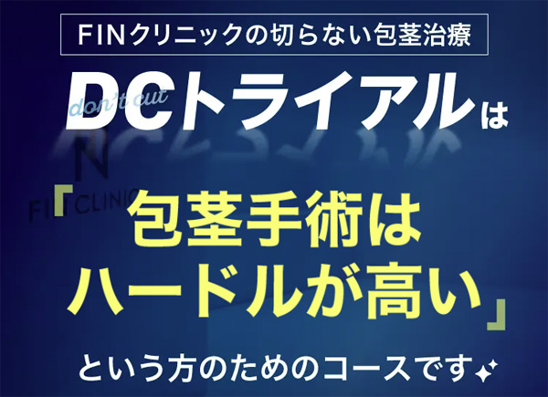 そんな疑問を持つ方のために、この記事ではFINクリニックが提供する「切らない包茎治療(DCトライアル)」の仕組みや特徴、そして実際にこの治療が向いている人の条件について解説します。