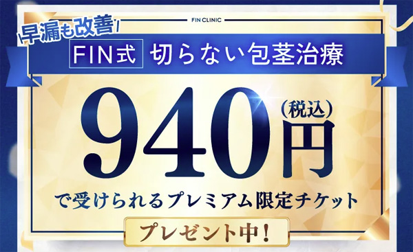 FINクリニックの「切らない包茎治療」を940円で受けるには、WEBからの予約が必須条件です。